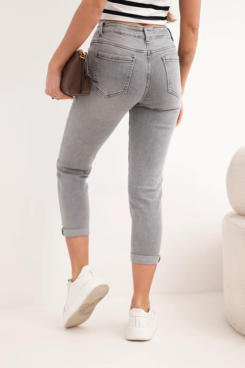 Spodnie damskie jeansowe Mom Fit z wysokim stanem i ozdobnym brelokiem grafitowa