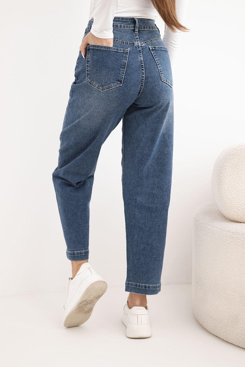 Spodnie damskie jeansowe z wysokim stanem i paskiem