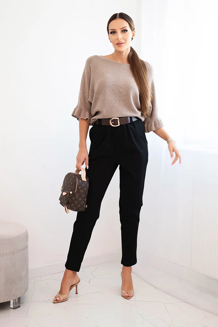 Spodnie damskie wiskozowe z paskiem i zwężaną nogawką czarne