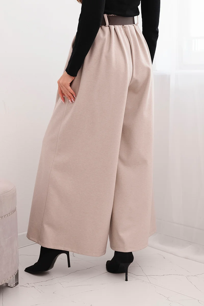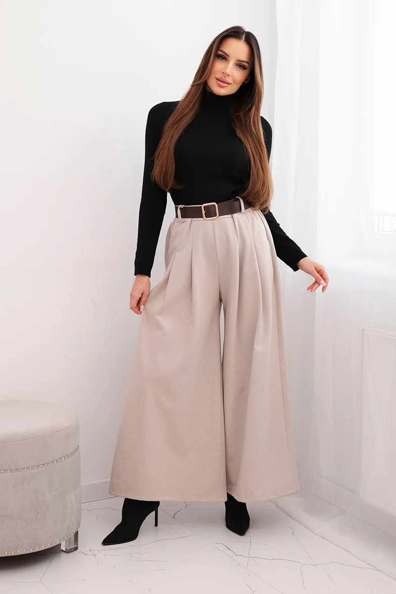 Spodnie damskie z szeroką nogawką i paskiem fango