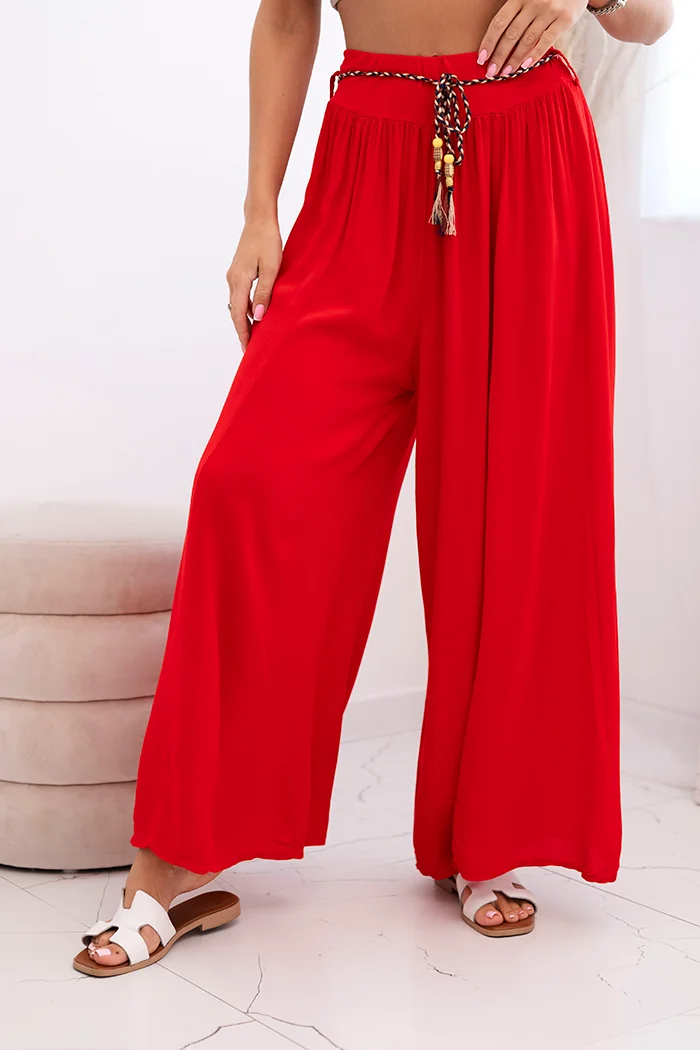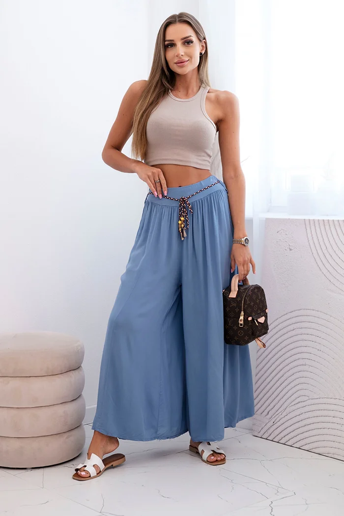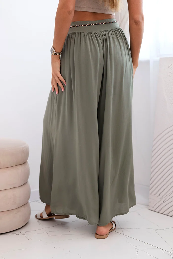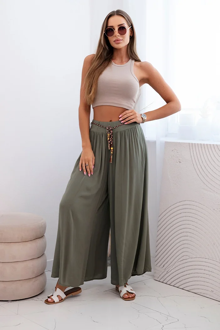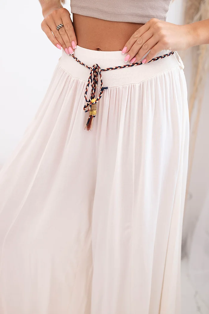 Spodnie damskie z wiskozy z szeroką nogawką jasno beżowe