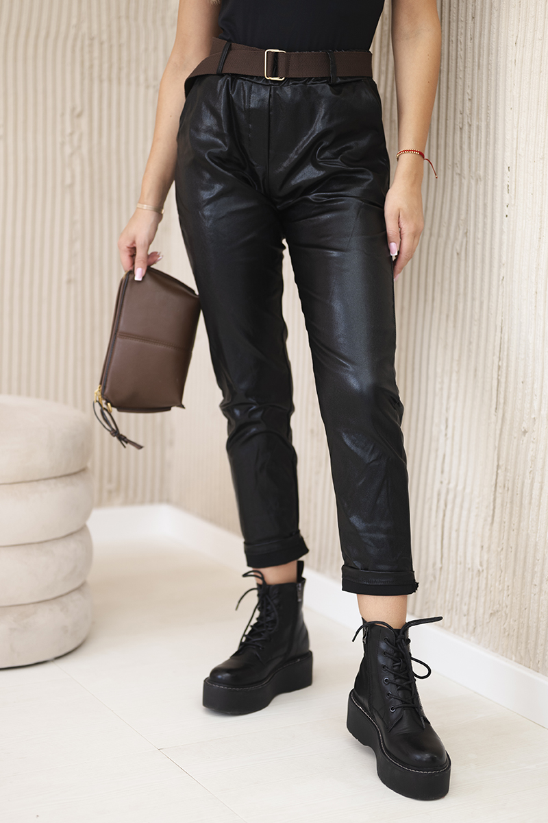 Spodnie woskowane z paskiem camelowy