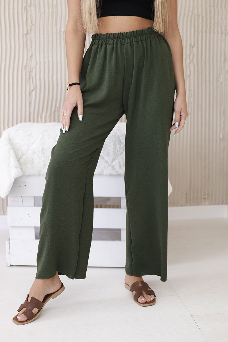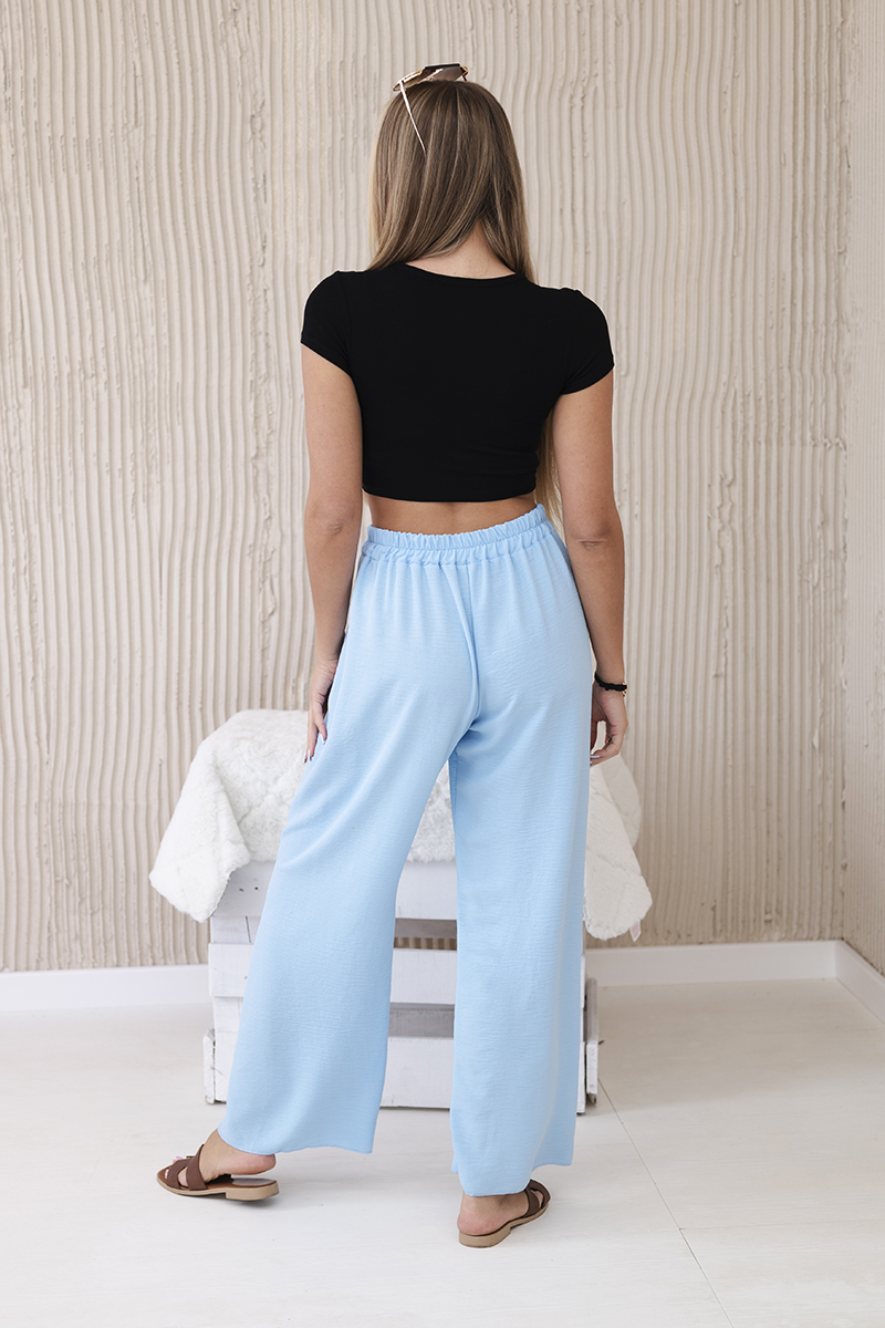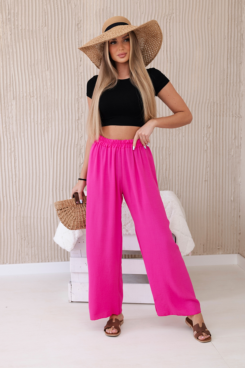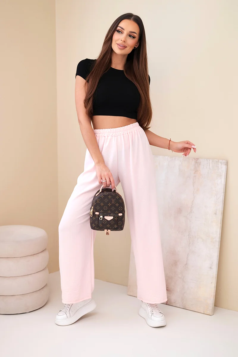 Spodnie z szeroką gumą w pasie pudrowy róż