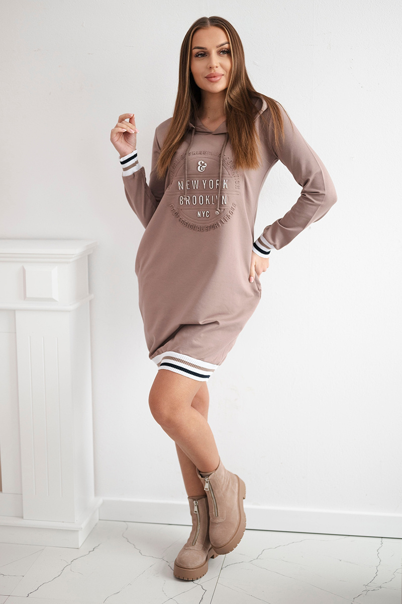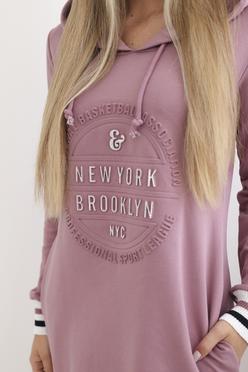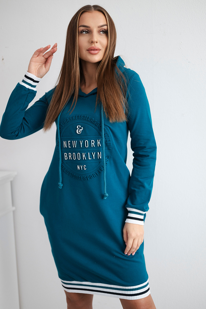 Prezentujemy Państwu wygodną sukienkę z napisem Brooklyn. Sukienka wykonana jest z wysokiej jakości materiału. Rozmiar jest uniwersalny i będzie odpowiedni dla Pań noszących rozmiar S, M lub L.