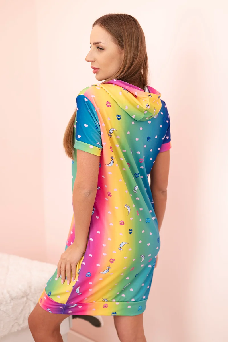 Sukienka damska bawełniana z kieszenią i kołnierzykiem w kolorowy wzór zielona