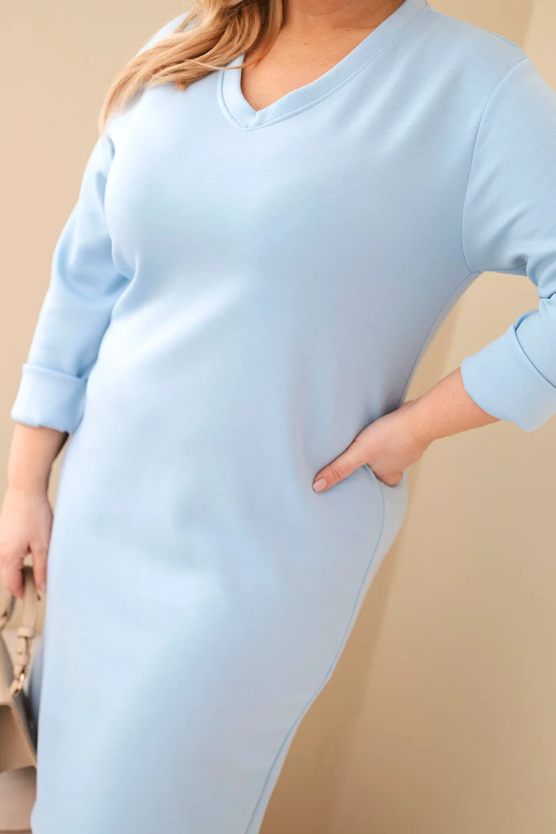 Sukienka damska Plus Size masełkowa z dekoltem V i rękawem ruda