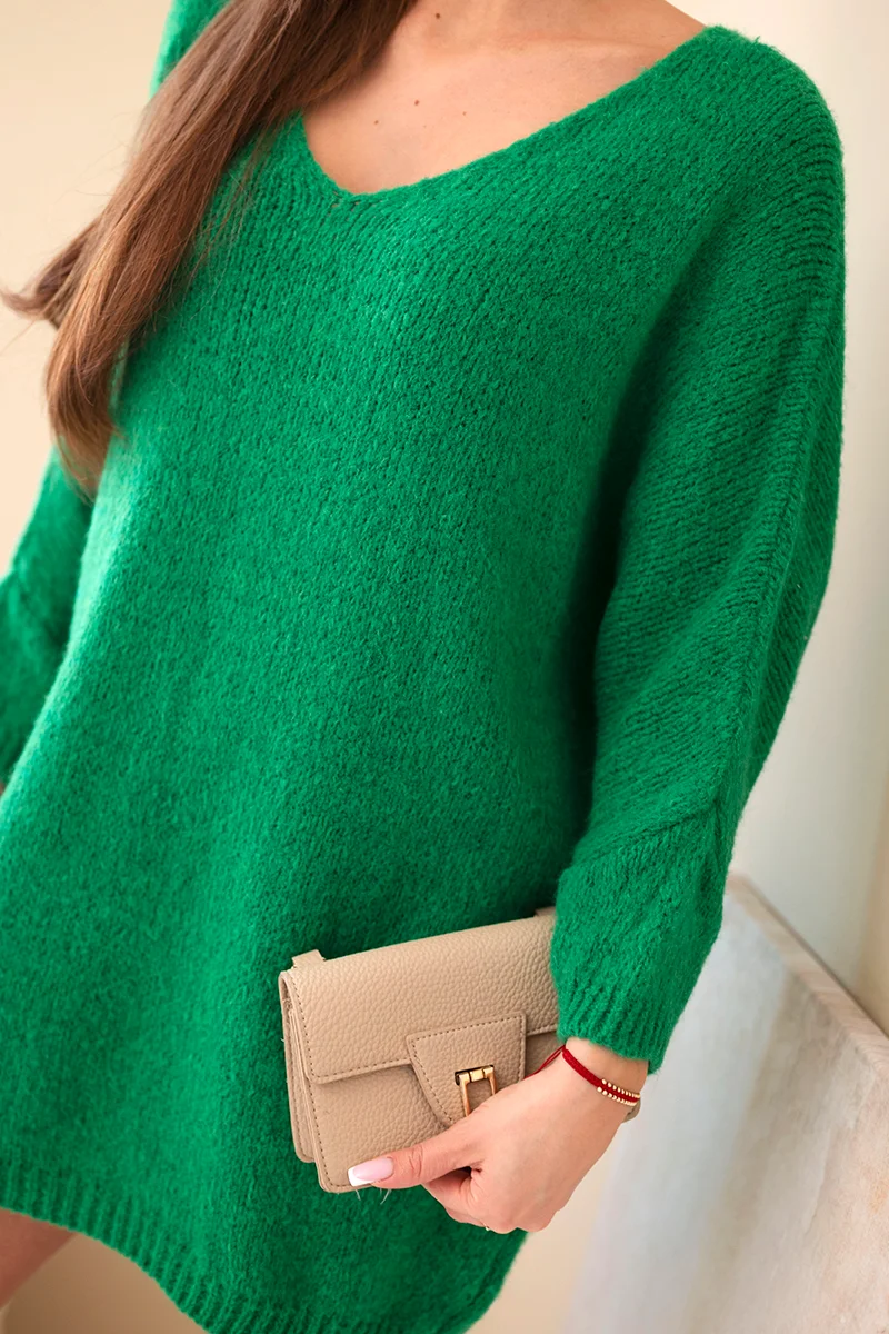 Sweter damski wełniany asymetryczny Plus Size z dekoltem V bordowy