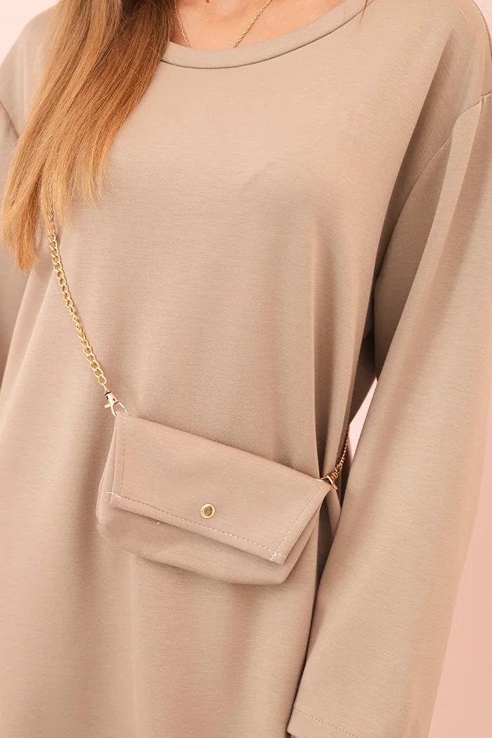 Sukienka damska wiskozowa Plus Size z torebką na łańcuszku khaki