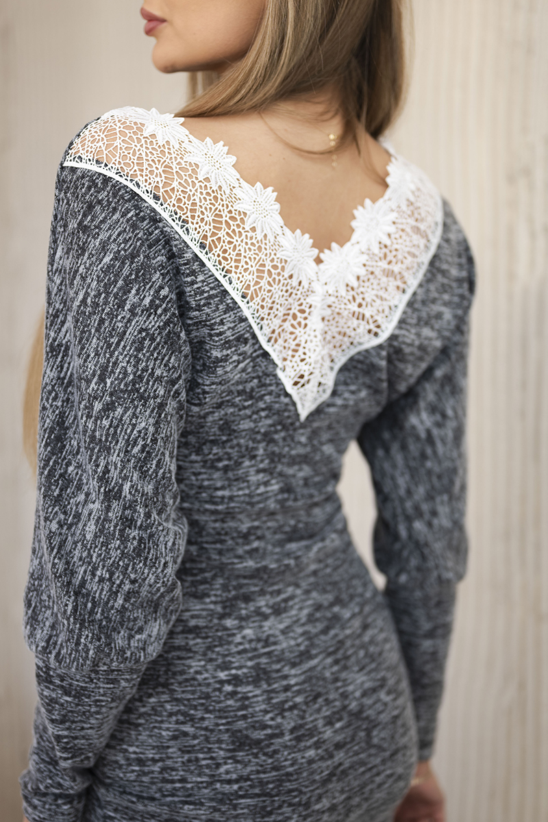 Sukienka damska z rękawem 3/4 i koronką na plecach khaki