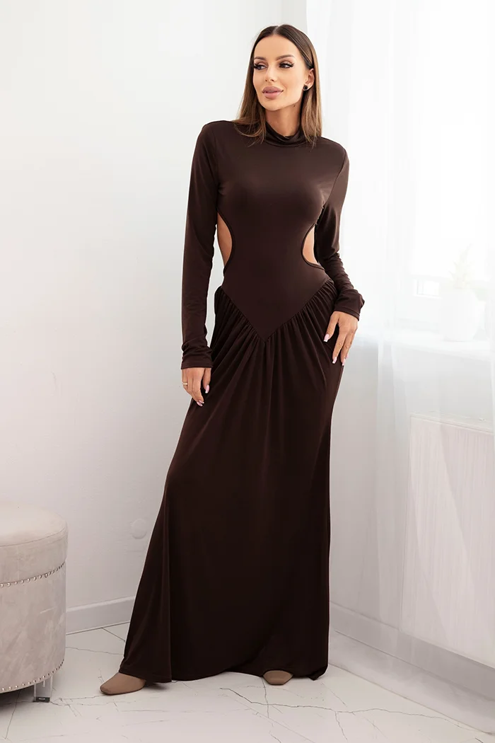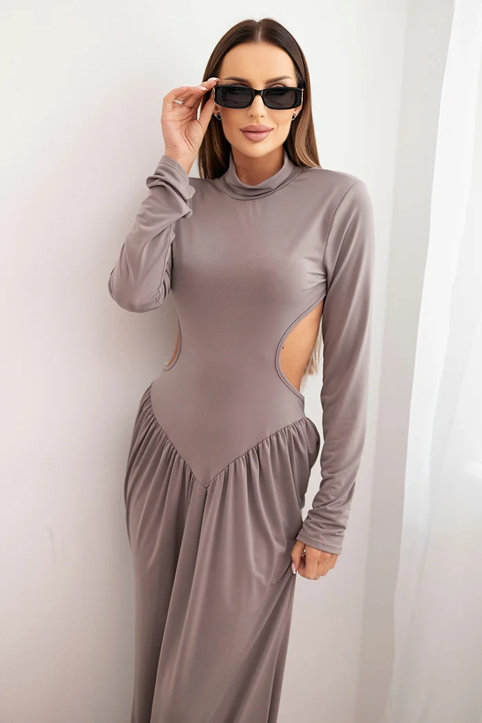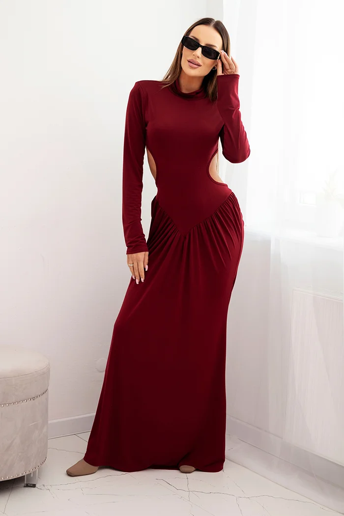 Sukienka damska z wiskozą długa z golfem i odkrytymi plecami bordowa