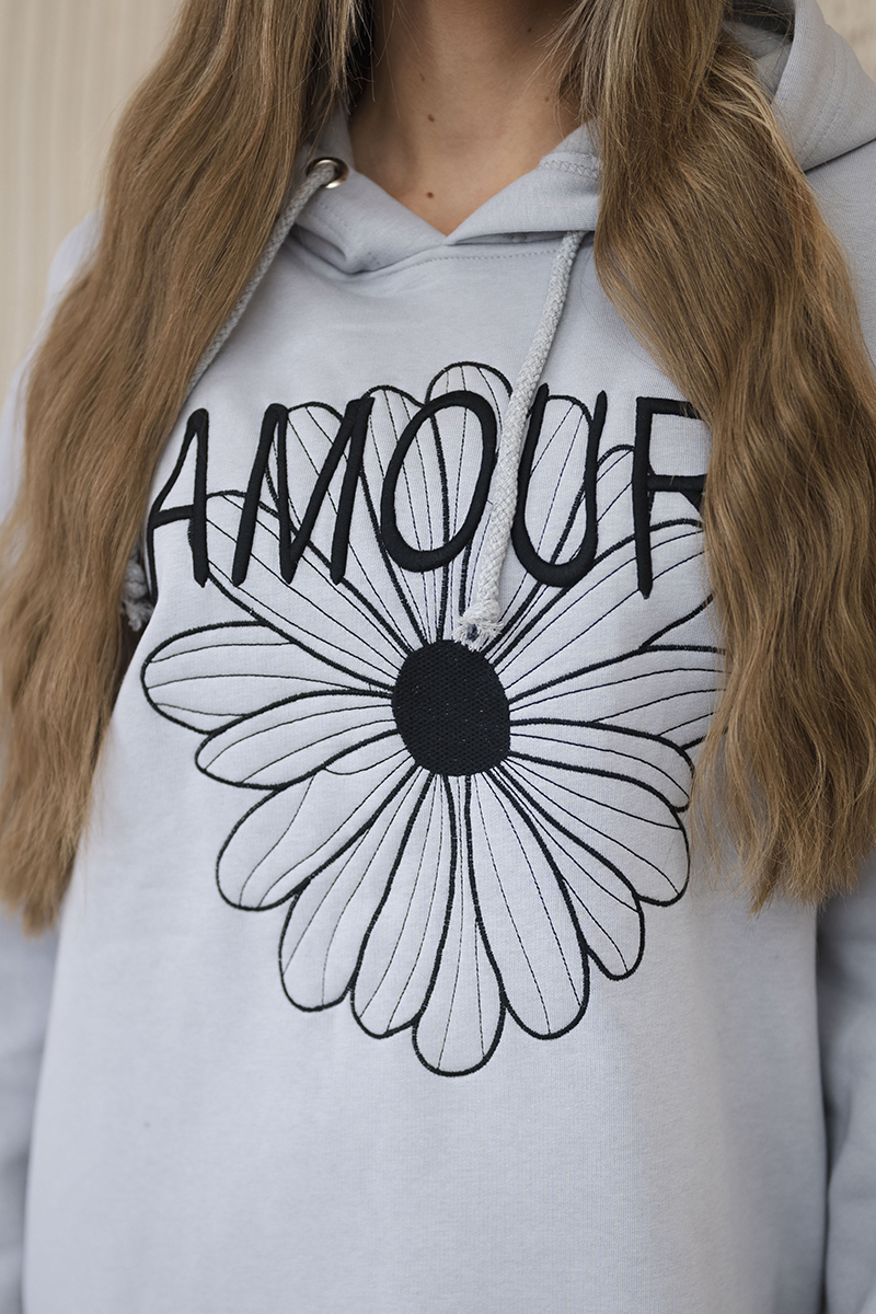Sukienka długa ocieplana z haftem szara