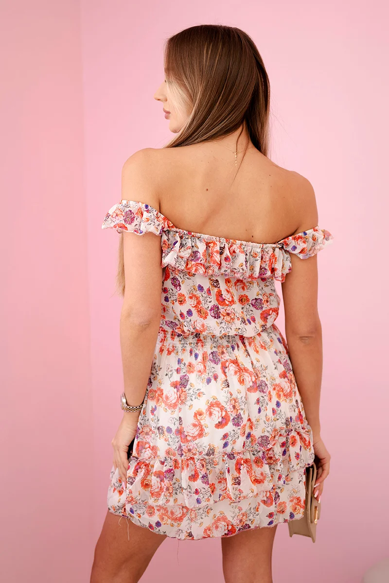 Sukienka hiszpanka z motywem kwiatowym ecru