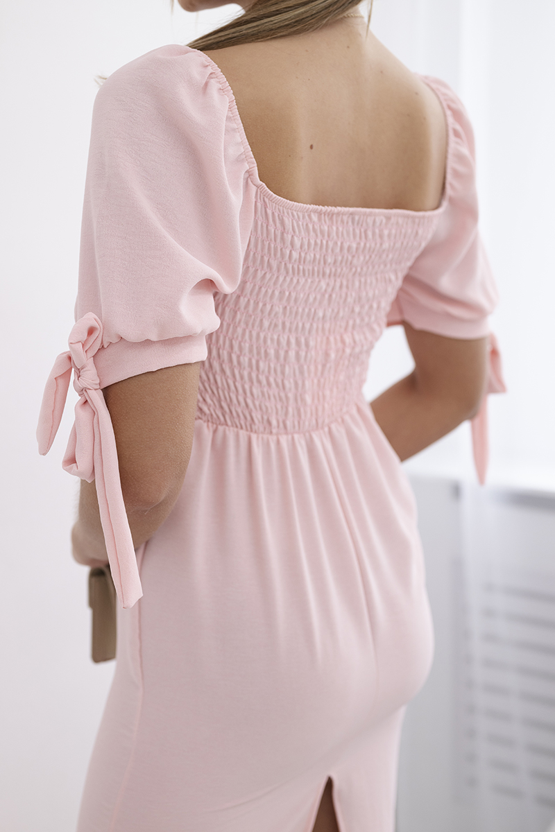 Sukienka marszczona z tyłu z wiązanym rękawem khaki