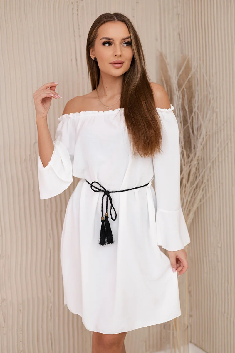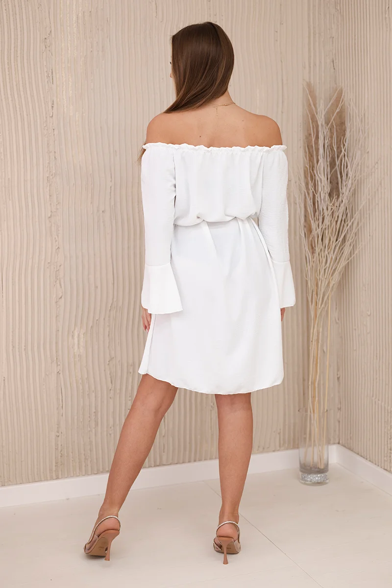 Sukienka z zapięciem na guziki i wiązaniem w talii pudrowy róż