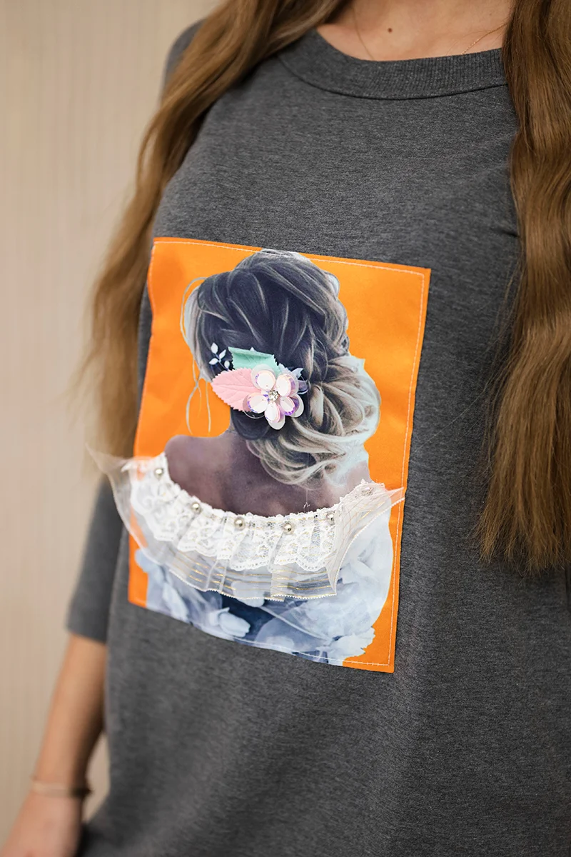 Sukienka z grafiką 3D i ozdobnymi chwostami ecru