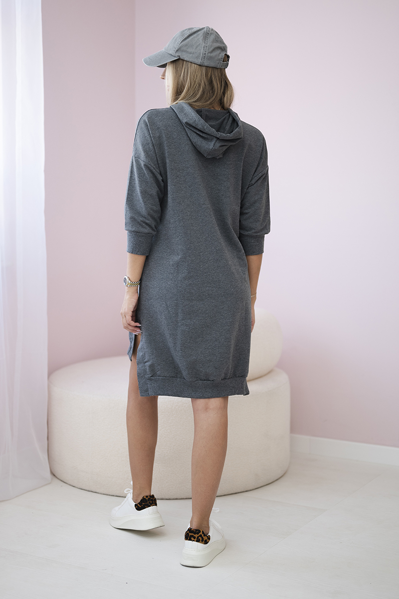 Sukienka z kapturem i dłuższym tyłem grafitowa