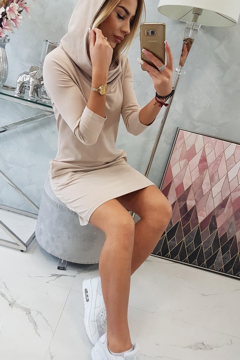 Prezentujemy Państwu wygodną sukienkę z kapturem i kieszeniami. Sukienka wykonana jest z wysokiej jakości materiału. Rozmiar jest uniwersalny i będzie odpowiedni dla Pań noszących rozmiar S, M lub L.