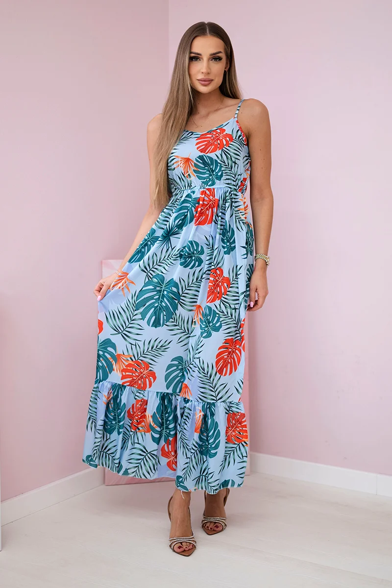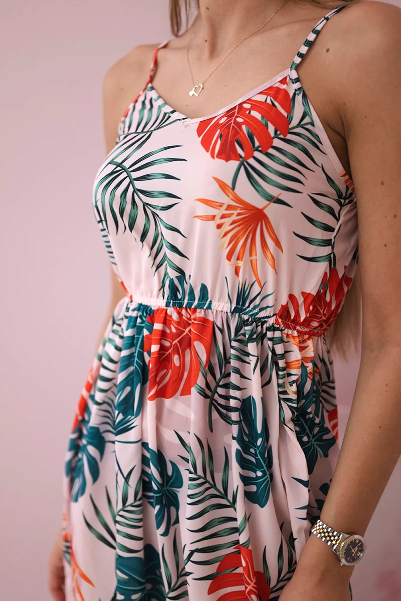 Sukienka z motywem liści fioletowa