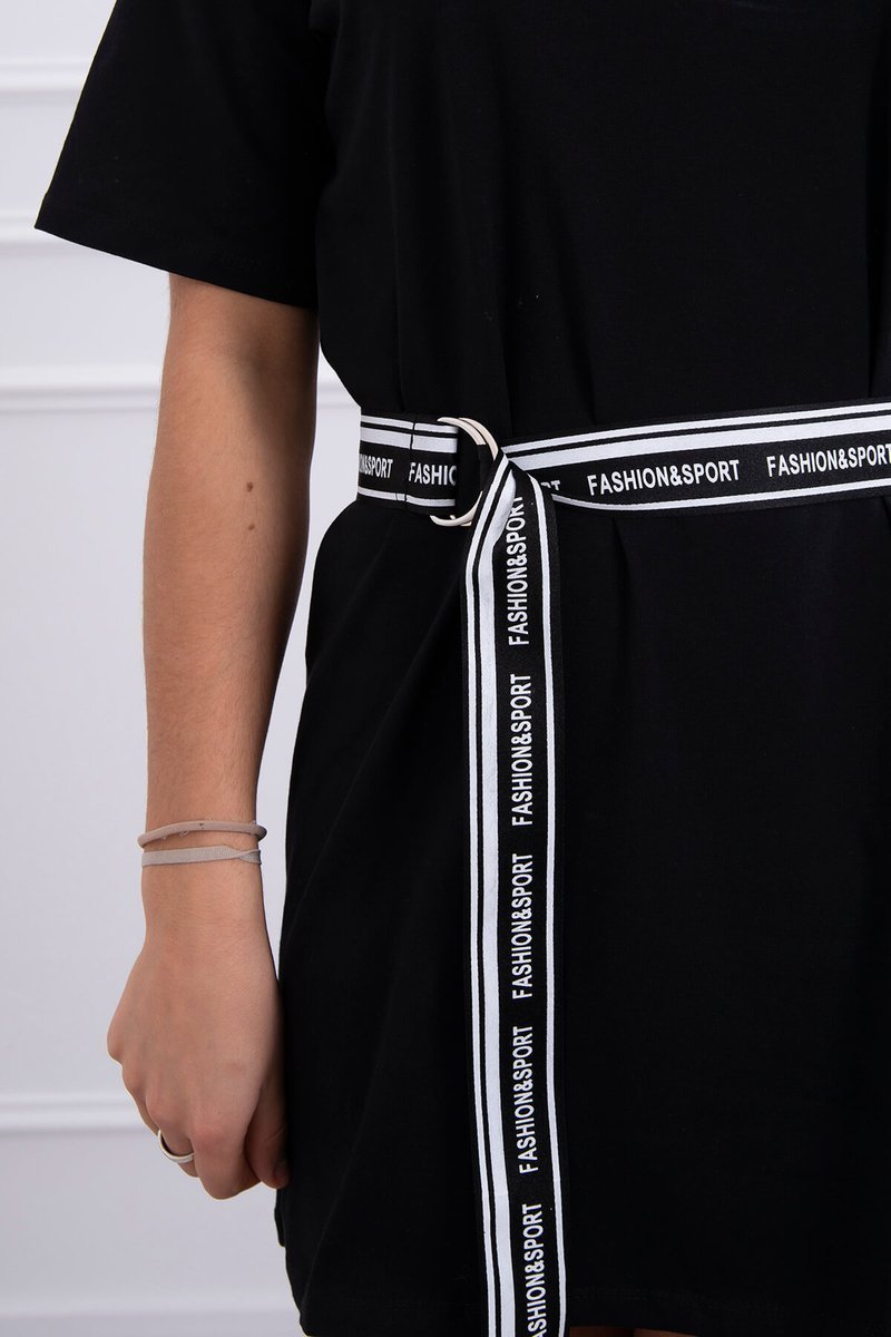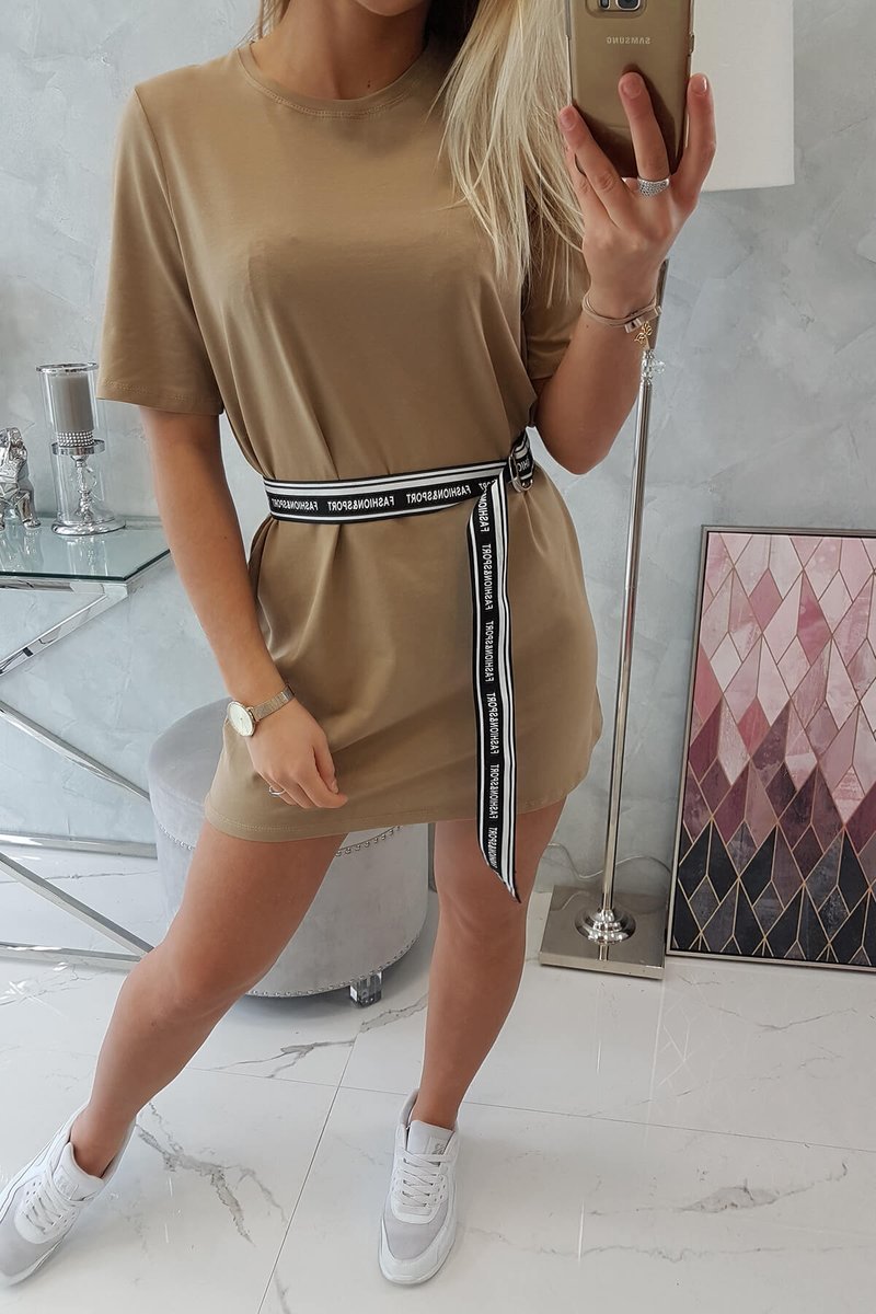 Sukienka z ozdobnym paskiem camelowa