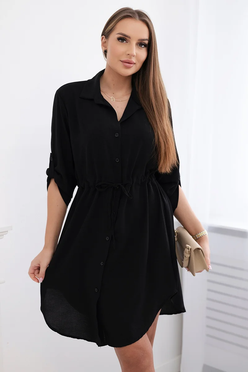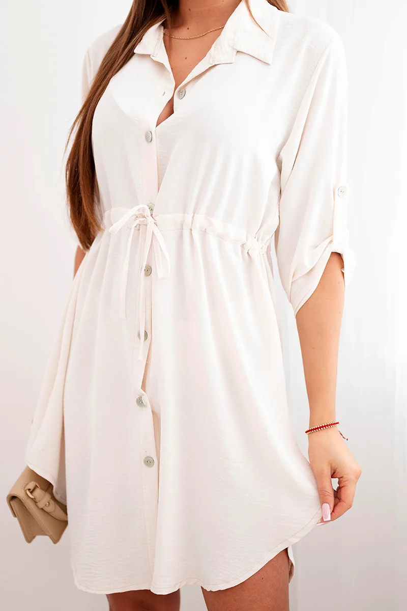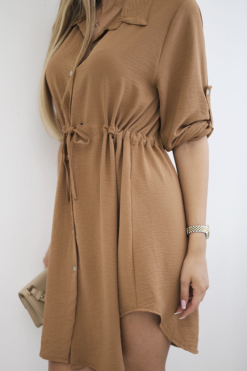 Sukienka z zapięciem na guziki i wiązaniem w talii pudrowy róż