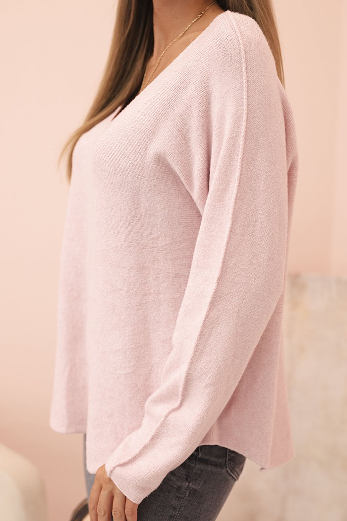 Sweter damska z wiskozą z dekoltem w serek błękitny