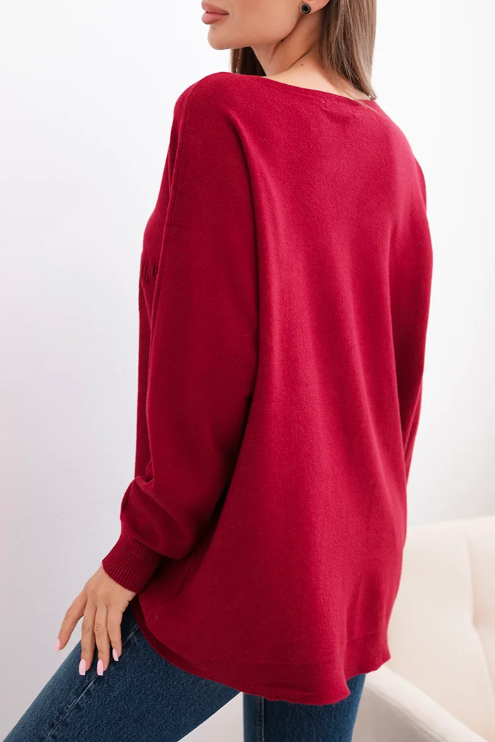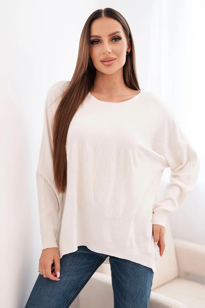 Sweter damski z dłuższym tyłem i tłoczoną gwiazdą szary