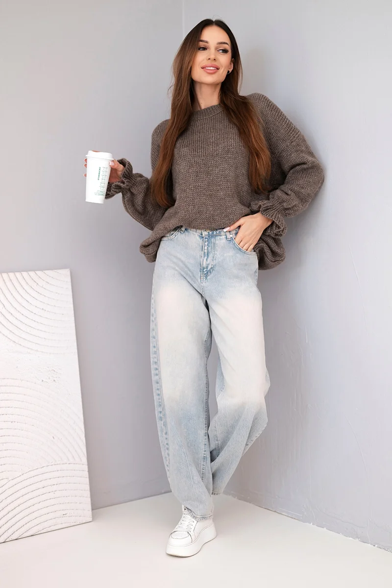 Sweter damski z dodatkiem moheru i wełny o luźnym fasonie rudy