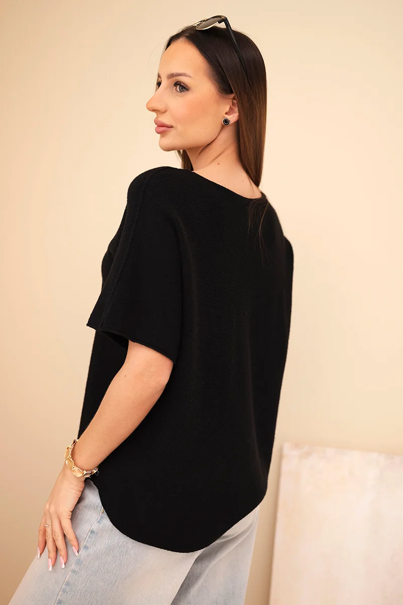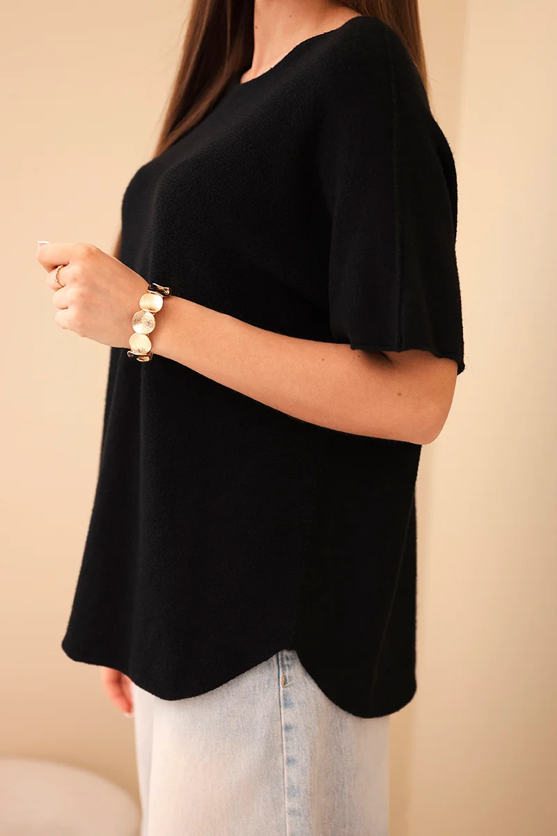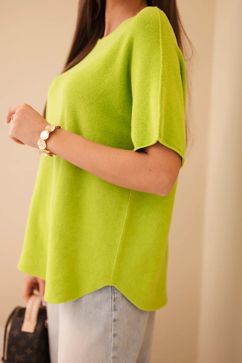 Sweter damski z krótkim rękawem o luźnym kroju pomarańczowy