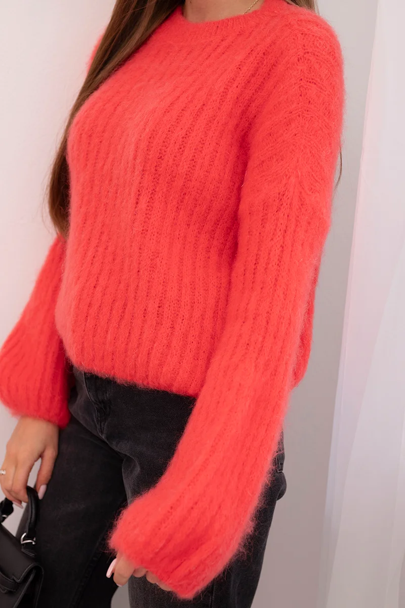 Sweter damski z dodatkiem moheru i wełny o luźnym fasonie rudy