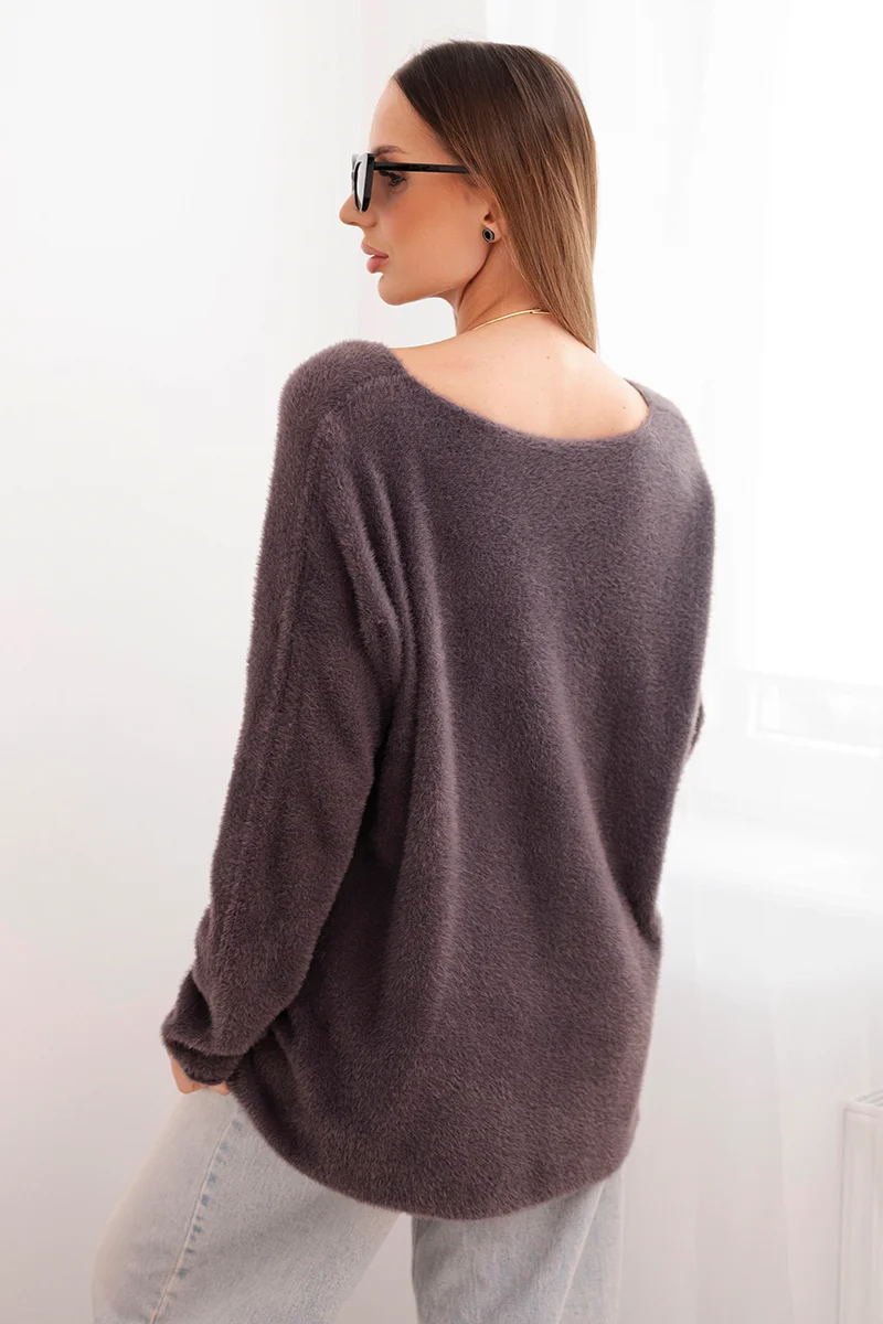 Sweter damski z wełną z dekoltem V ciemno beżowy