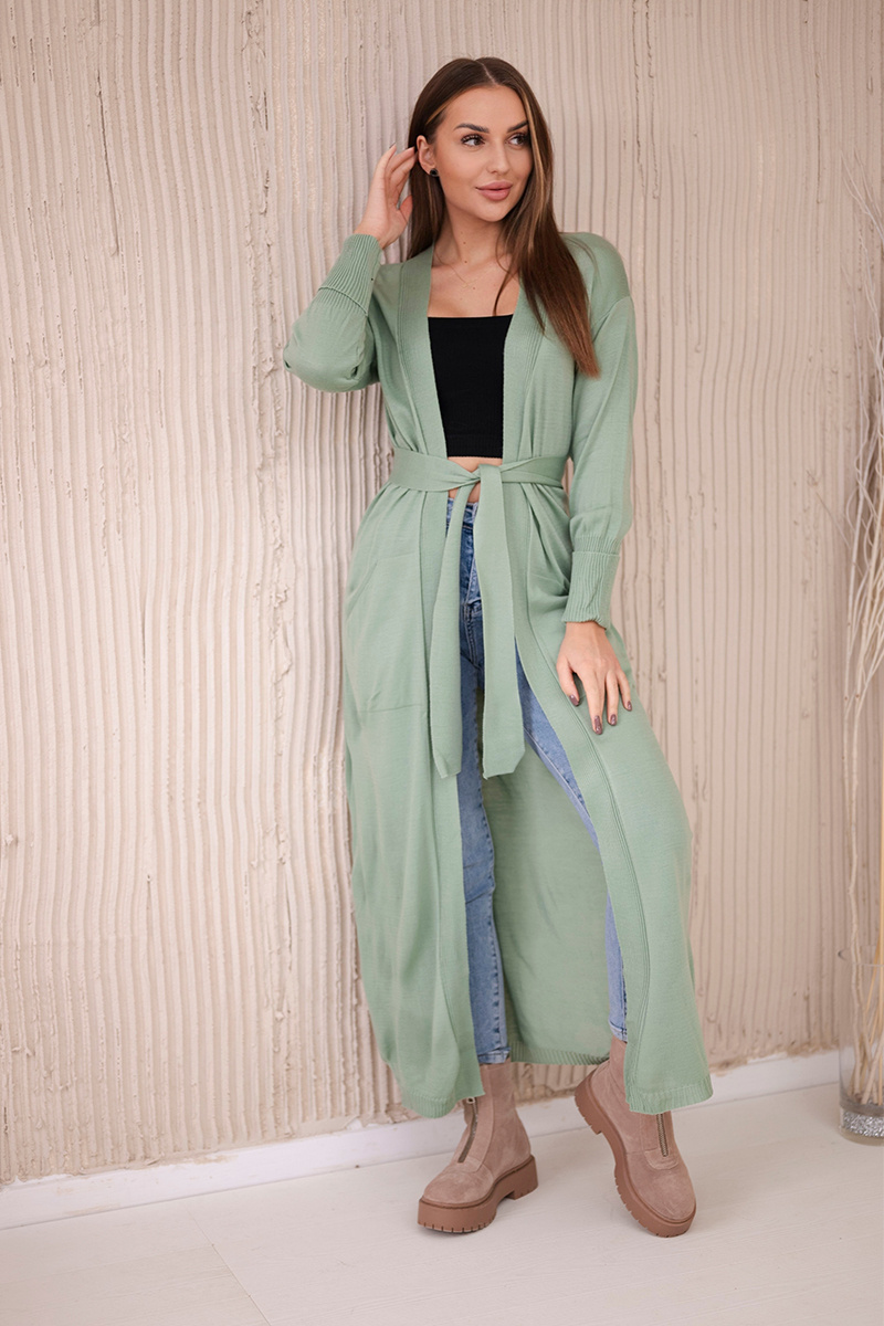 Sweter długi kardigan wiązany w talii niebieski