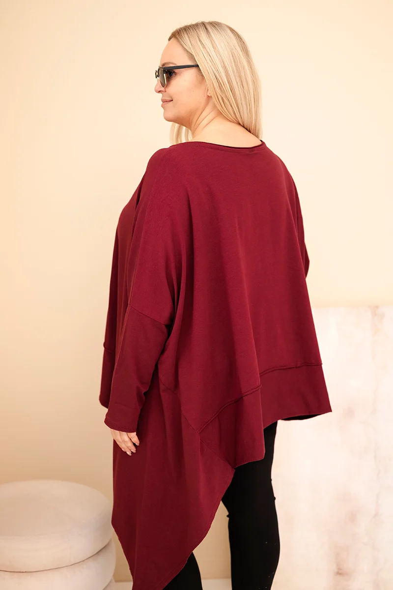 Bluzka damska Plus Size z bawełny z ozdobnymi guzikami i podwijanymi rękawami bordowa